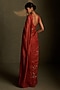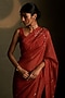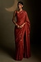 Featuring a crimson saree in mul chanderi base base with star motifs and glass embroidery. It is paired with a mul chanderi and voil sleeveless blouse. Accentuate it with dangler earrings and heels for festive occasions.
