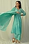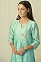 Featuring a green ombre gathered kurta in cotton base with bird applique embroidery. It is paired with matching palazzo pants and a chanderi dupatta.