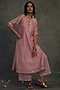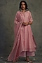 Featuring a light pink kurta in chanderi base with a neck tie and mirror embroidery. It is paired with a matching dupatta and cotton palazzo pants.