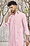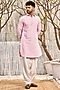 Featuring a pastel pink pathani kurta in dobby cotton base with textures and side pockets. It is paired with contrasting cotton satin salwar pants.