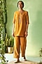 Featuring a mustard kurta in chanderi and voile base with palm tree motif embroidery. It is paired with pants. Accentuate it with statement earrings and heels for an evening or a festive look or family gathering.