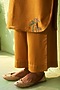 Featuring a mustard straight kurta in chanderi and voile base with palm tree embroidery. It is paired with cotton satin embroidered pants and an organza dupatta. Accentuate it with statement earrings and heels for a festive look.