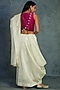 Featuring an off-white saree in chanderi base. It is paired with a magenta sleeveless crop top blouse having mirror embroidery. Accentuate it with statement jewellery and heels for weddings or festive occasions.