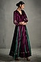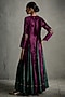 Featuring a pink kalidar wrap dress in velvet base with a circular embroidery. Style it with soft curls, minimal jewellery, and delicate heels for a complete look. Perfect for festive occasion, sangeet and daytime weddings.