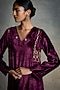 Featuring a pink jacket-style kurta in velvet base with circular embroidery. It is paired with palazzo pants and an organza dupatta. Style it with soft curls, minimal jewellery, and delicate heels for a complete look. Perfect for festive occasion, sangeet nights and daytime weddings.