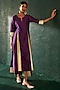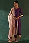 Featuring a purple kurta in chanderi base with gota embellishments. It is paired with cotton satin pants and a dupatta. Style it with heels and dangler earrings for a festive look.