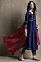 Featuring a sapphire blue kurta in chanderi base with bell sleeves and mirror embellishments. It is paired with matching cotton embellished joggers and a contrasting chanderi dupatta.