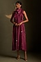 Featuring a twilight magenta ankle-length dress in mul chanderi base and voil base with star motifs and glass details, including slender adjustable shoulder straps. It is paired with a mul chanderi embroidered square scarf. Accentuate it with dangler earrings and heels for casual look.
