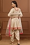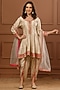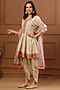 Beige Bemberg Silk Embroidered Short Anarkali Set