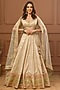 Featuring a beige lehenga in pure banarasi chanderi base with embroidery. It is paired with an embroidered blouse and a dupatta. Accentuate it with statement jewellery and heels for a sangeet or engagement ceremony.