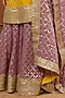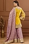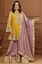 Featuring a mustard yellow kurta in tissue organza base with embroidery. It is paired with lilac embroidered sharara pants and a dupatta. Accentuate it with jewellery and heels for festive occasions or a wedding ceremony.