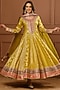 Mehendi Colored Banarasi Chanderi Embroidered Anarkali Set