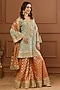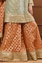Featuring a mint kurta in viscose organza base with embroidery. It is paired with rust embroidered sharara pants and a dupatta. Accentuate it with jewellery and heels for festive occasions or a wedding ceremony.