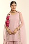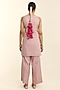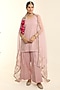 Featuring a blush pink short kurta in tissue chanderi base with a round neckline and hand embroidery. It is paired with an elasticated palazzo pants and a dupatta. Accentuate it with statement jewellery and heels for a festive occasion or pooja ceremony.