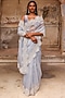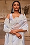 Featuring an ice blue saree in organza base with white dori work. It is paired with a silk unstitched blouse piece. Accentuate it with pearl jewellery, a metallic clutch and heels for a graceful look, perfect for festive occasions or daytime events.