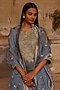 Featuring a moon blue kurta in organza striped tissue base with dori work. It is paired with slub raw silk farshi pants and an organza dupatta. Style it with kundan jewellery and classic heels for a regal, polished look. Perfect for pre-wedding functions, festive celebrations or pooja ceremonies.