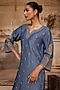 Featuring a moon blue kurta in slub raw silk base with dori work. It is paired with palazzo and an organza dupatta. Style it with kundan jewellery and classic heels for a regal, polished look. Perfect for pre-wedding functions, festive celebrations or pooja ceremonies.
