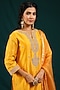 Featuring a mustard kurta in chanderi silk base with hand embroidery. It is paired with matching pants and a kota doria dupatta.