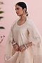 Pearl White Silk Chanderi Hand Embroidered Kurta Set