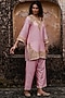 Featuring a rose pink kurta in raw silk base with dori work. It is paired with farshi pants and an organza dupatta having kiran work. Style this designer set with wedges, gold jhumkas and a sleek braid for a chic ethnic look. Ideal for festive gatherings or family functions.