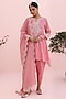 Featuring a rose pink kurta in tissue chanderi base with hand and machine embroidery. It is paired with salwar pants and a tissue dupatta. Accentuate it with statement jewellery and block heels for festive occasions, weddings or engagement ceremony.