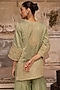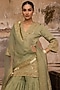 Featuring a sage green kurta in striped tissue mul chanderi base with gold dori handwork. It is paired with mul chanderi gharara and an organza dupatta. Style it with kundan jewellery and classic heels for a regal, polished look. Perfect for mehendi functions, festive celebrations or pooja ceremonies.