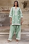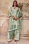 Featuring a sage green kurta in pure dupion silk base with dori work. It is paired with farshi pants and an organza dupatta. Style it with kundan jewellery and classic heels for a regal, polished look. Perfect for pre-wedding functions, festive celebrations or pooja ceremonies.