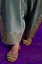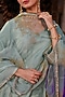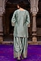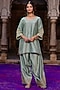 Featuring a sage green kurta in raw silk base with dori work. It is paired with farshi pants and an organza dupatta having kiran work. Style this designer set with wedges, gold jhumkas and a sleek braid for a chic ethnic look. Ideal for festive gatherings or mehendi ceremonies.