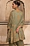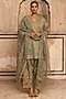 Featuring a sage green kurta in striped tissue mul chanderi base with dori work. It is paired with palazzo and an organza dupatta. Style it with kundan jewellery and classic heels for a regal, polished look. Perfect for mehendi functions, festive celebrations or pooja ceremonies.