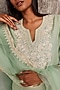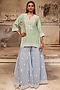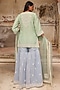 Featuring a tea green and ice blue kurta in mul chanderi base with dori handwork. It is paired with sharara and a tea green organza dupatta. Style it with kundan jewellery and classic heels for a regal, polished look. Perfect for mehendi functions, festive celebrations or pooja ceremonies.