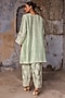 Tea Green Slub Raw Silk Dori Work Kurta Set
