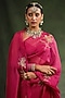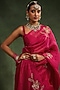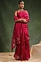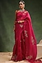Featuring a wine saree in silk organza base with hand embroidery. It is paired with an unstitched blouse piece. Accentuate it with statement jewellery and heels for a festive party.