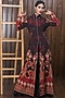 Featuring a black long jacket in crepe base with paisley print. It is paired with matching sharara pants.