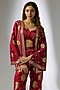 Red Crepe & Silk Brocade Digital Printed Blazer Set
