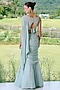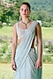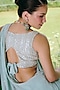 Featuring an aqua blue fish-cut saree in organza, georgette, taffeta and silk base with mirror work. It is paired with an embellished blouse. Accentuate it with statement jewellery and heels for a sangeet or engagement ceremony.