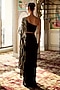Charu & Vasundhara presents a black one-shoulder draped top in organza base with wave embroidery. It is paired with a draped skirt. Accentuate it with statement earrings. a clutch and block heels for a stylish ensemble, ideal for festive gatherings, sangeet or cocktail parties.