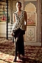 Charu & Vasundhara presents a black overlap jacket in organza base. It is paired with a pick-up skirt. Accentuate it with statement earrings. a clutch and block heels for a stylish ensemble, ideal for festive gathering, sangeet or cocktail parties.