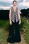 Featuring a black jacket in silk and taffeta base with cutwork embroidery. It is paired with a bustier and organza pants. Accentuate it with statement earrings and heels for a festive look.
