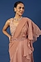 Featuring a blush pink ruffled pre-draped saree in chiffon base. It is paired with a matching tussar blouse having abstract floral hand embroidery and a belt.