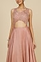 Featuring a blush pink gown in silk base with floral embroidery.