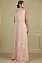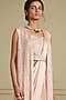 Featuring a blush pink cape in mulberry and tussar base with hand embroidery. It is paired with a matching stitched blouse and a georgette base saree.