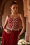 Featuring a burnt red draped saree in cupro silk, taffeta and chiffon base with paisley embroidery. It is paired with an embroidered princess-cut sleeveless blouse. Style it with kundan earrings, a potli bag and embellished heels for a stylish ensemble, ideal for festive occasions, sangeet or engagement ceremony.