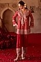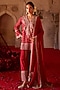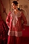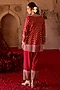 Featuring a burnt red kurta in cupro silk, chanderi silk, organza and taffeta base with paisley embroidery. It is paired with farshi pants and a dupatta. Style it with kundan stud earrings, a potli bag and embellished heels for a stylish ensemble, ideal for festive occasions, family celebrations or special gatherings.