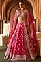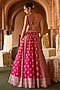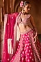 Featuring a fuchsia pink lehenga in cupro silk, taffeta and net base with panel embroidery. It is paired with an embroidered blouse and a net dupatta. Style it with kundan polki jewellery, a potli bag and embellished block heels for a stylish ensemble, ideal for a wedding, sangeet or engagement ceremony.