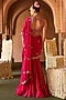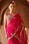 Featuring a fuchsia pink draped saree in organza, taffeta and dola silk base with stone embroidery. It is paired with an embellished blouse. Style it with kundan earrings, a potli bag and embellished heels for a stylish ensemble, ideal for festive occasions, sangeet or engagement ceremony.