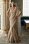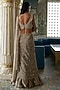 Charu & Vasundhara presents a golden lehenga saree in tissue base with floral embroidery. It is paired with an embroidered blouse. Accentuate it with statement earrings. a clutch and block heels for a stylish ensemble, ideal for festive gathering, sangeet or reception ceremonies.