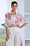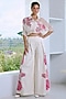 Featuring an ivory shirt in organza and taffeta base with embroidery. It is paired with a silk bustier and box pleated pants. Accentuate with statement jewellery and heels for a complete look.