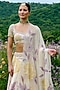 Featuring an ivory lehenga in organza, taffeta and net base with floral print and embroidery. It is paired with an embellished blouse and a dupatta. Accentuate it with statement jewellery and heels for a wedding or engagement ceremony.
