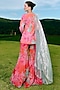 Featuring an orange kurta in crepe and organza base with embroidery and floral print. It is paired with flared sharara pants and tissue dupatta. Accentuate it with statement jewellery and heels for a festive ceremony.