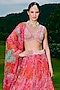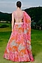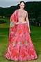 Featuring an orange lehenga in organza, taffeta and net base with floral print and embroidery. It is paired with an embellished blouse and a dupatta. Accentuate it with statement jewellery and heels for a wedding or engagement ceremony.